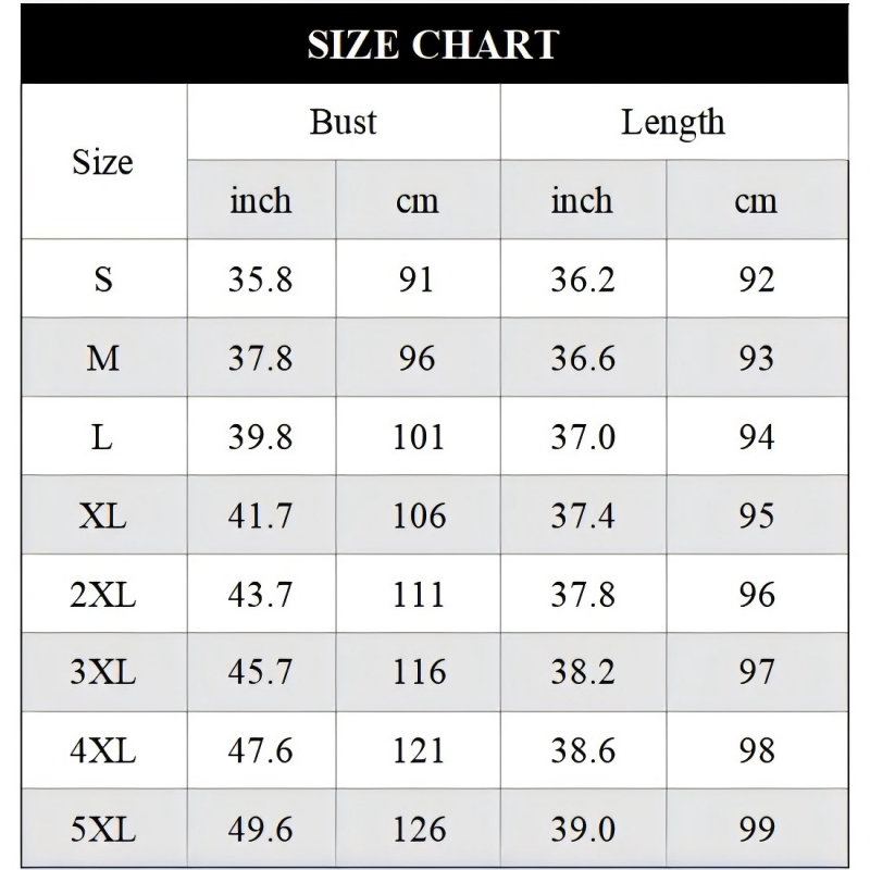 Tailles : S, M, L, XL, 2XL, 3XL, 4XL, 5XL