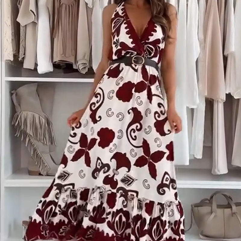 Contenu du colis : 1 × Robe Longue Fleurie Sans Manches à Col en V pour Femme