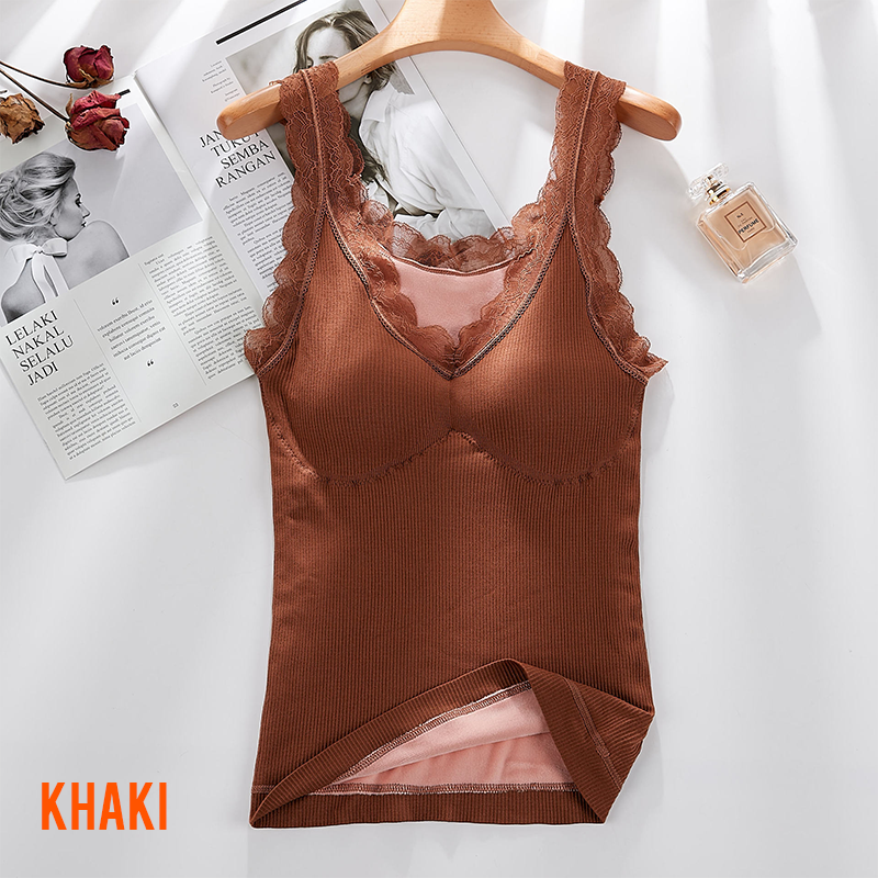 Contenu de l'emballage : 1 * Débardeur Chaud avec Bordure en Dentelle et Soutien-gorge Intégré