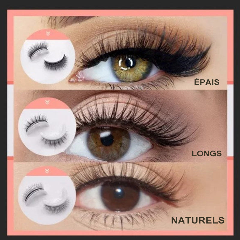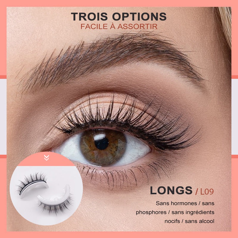 Les nouveaux faux Cils Auto-adhésifs Réutilisables faciles à utiliser, sans besoin de colle ni d'eyeliner. Ils sont auto-adhésifs et peuvent être appliqués en 3 secondes, simplifiant grandement votre processus de maquillage. Gain de temps et d'effort.